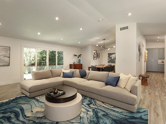On a secluded knoll looking over Montecito Park rests this elegantly re-imagined mid-century. The Owners commissioned a Swedish designer for his more exacting international restraint that whispers its joy of clean lines bathed in natural light. The original exterior has been preserved. The living and dining rooms share their high ceilings, grey flooring, and a stunning wet bar of Negra stone. The kitchen is spectacular with high end appliances and gorgeous counters. The central hall leads to all three en suite bedrooms and their updated baths. The master enjoys large closets, a view of the private grounds, and a spa-like master bath with a huge spa tub ensconced in Carrara marble, and an over-sized stall shower. The front and rear grounds have been tastefully landscaped and provide beautiful space to entertain. Features include: a newer roof, CA/FA, updated copper plumbing, an over-sized att. garage with drive through door, and the award winning schools of this neighborhood.