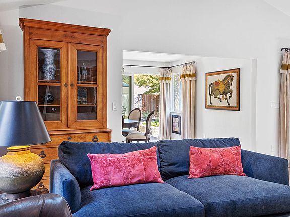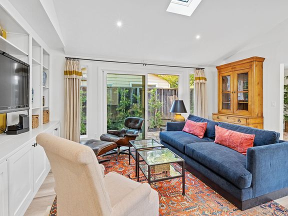 Art Collector's Sophisticatedly Furnished Home Available April 3, 2025. Fully furnished and available month to month with a 2 month min stay. Includes all utilities, water, garbage, internet, and twice monthly gardening service. Overview If you care about interior design, quality furnishings and fabrics, good light, and how a space feels, you'll love this home! This newly renovated, warm, bright, open and airy 1500 square foot, 3 bedroom, 2 bathroom home is beautifully furnished with selected antiques, authentic oriental wool rugs, and original art. If you need a dedicated office, the 3rd bedroom can be changed to an office. With a sliding door to the patio, this room makes a beautiful work space. Large sliding glass doors in the living room, dining room, and kitchen open on to inviting patios with artfully landscaped and lighted gardens beyond. Location The home is located on a quiet cul de sac with friendly neighbors who walk their dogs and families who pull children in wagons. Mature trees keep the area cool and green. Entry An inviting private courtyard, with shade loving plants in big terracotta pots, welcomes you to this artful home. Kitchen/Living/Dinning Rooms The new contemporary, open plan kitchen has quartz counter tops, an induction range, a peninsula with seating, and plenty of prep and storage space. Everything you need to prepare meals and entertain is provided. Vaulted ceilings, skylights, and a big sliding glass door that leads to lush landscaping fill the living area with light and green. A vintage Eames leather reclining chair, antique oriental Heriz rug, and collected art pieces add sophistication and style. With windows on 3 sides, the dining room gets beautiful light. The 8' sliding door opens on to the patio and landscaped gardens beyond, further enhancing the indoor/outdoor connection. The hall niche has plenty of hooks for coats and bags, a place to take off your shoes and stash them out of site. The linen closet at the end of the hall contains plenty of extra towels, sheets, and housekeeping supplies. Bedrooms The primary bedroom has a vaulted ceiling and skylight, making it feel open and airy. An antique Japanese screen hangs above the king size bed, and custom pillows add color, texture and pattern to the bespoke linen bed cover, while a vintage oriental rug feels plush under foot. The ensuite, primary bath has a shower, huge mirror, and a window that brings in natural light and fresh air. The 2nd bedroom has a queen bed, thick wool oriental rug, and playful art and drapes. There is plenty of room for clothes in the large dresser and closet. The 3rd bedroom can be used as a bedroom or an office. As a bedroom, there is an iron 4 poster, single bed with extra-long mattress that comfortably sleeps an adult or child. For an office, there is a chrome and glass desk that looks onto the side patio. The colorful vintage oriental rug and wooden shell console table bring artistic flair to the space. Patios & Garden The patio has a stylish sectional, and the up-lighting and Italian string lights make the garden magical in the evening. The dining table with umbrella seats 6. The professionally landscaped and maintained gardens provide color and texture, enhancing the sense of calm, natural surroundings. Furnished rental with 30 day min stay. Utilities, garbage, water, internet, and twice monthly gardening included. The cleaning costs, which typically run $350, will be deducted from the Security Deposit so the home can be professionally cleaned at the end of your stay. Pets will be considered on a case-by-case basis with a pet fee. Sorry, no cats.