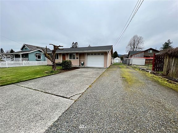 Amazing opportunity! Stunning three bedroom one bathroom rambler in the highly desired Enumclaw community and potential rental income with DDU that adds one bedroom and bathroom. Enjoy open concept floorplan within living space, cozy wood fireplace and dining area into kitchen. Immense work and storage space throughout kitchen. Spacious bedrooms in back. Patio with covered portion, great for outdoor entertaining. DDU recognized as 3143 1/2 with own electric meter and cable. Garage equipped with added storage and shelving that stays. RV parking. Large yard with two storage sheds and stunning landscaping - wait until you see your flowers bloom in spring. Great location near downtown Enumclaw! Shops, dining, schools, parks and more!