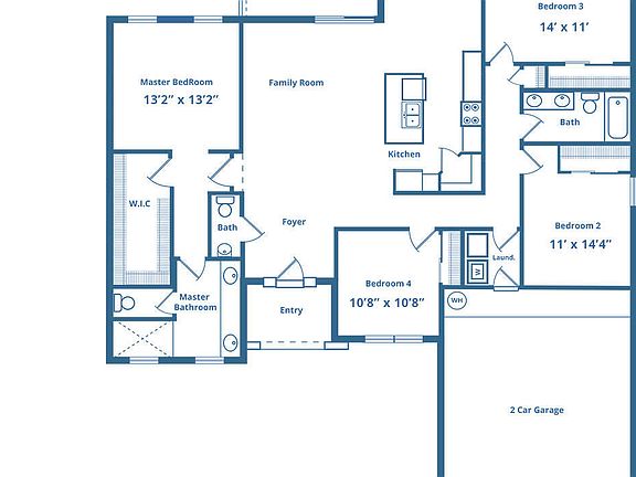 The two-car garage opens directly into the laundry room, allowing a one-stop shop for dirty clothes, shoes, cleaning supplies, and other necessities to be stored conveniently out of view. With a master bedroom located far from the other three, couples with children can enjoy a higher level of privacy.