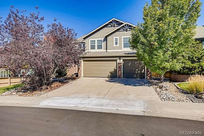 Awesome, move-in ready Beazer home in the desirable Firelight neighborhood! Majestic entry with a staircase and soaring ceilings in the entry. Home Office/Bedroom with an en-suite 3/4 bath on the main level. The gourmet kitchen has designer finishes with a huge island, granite countertops, custom raised-panel cabinets, double oven, gas cooktop, and a bay window breakfast area that leads to the covered deck with views. Laundry/Mud Room off of the 3 car garage with added lights and service door. Multi-purpose Loft leads to 3 large bedrooms, 2 bathrooms, and a Spacious Master Suite with retreat, two walk-in closets, & a luxurious 5-piece bath. The professionally finished basement with a family room, playroom, bedroom, and bathroom. Large lot with great outdoor spaces including the stamped concrete patio. Sweeping views of Denver Tech Center and flat tops of Lone Tree. This home has a fantastic quiet location, Walk to open space with miles of hiking and biking trails, schools, recreation Centers, restaurants, parks, the Backcountry Wilderness Area, C-470, I-25, & DTC.