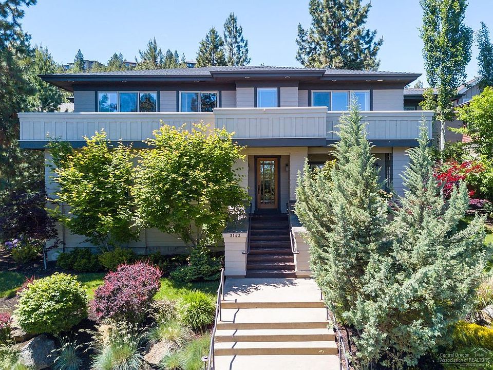 Luxurious Awbrey Village Prairie Style home with impressive Easterly city views from 2 expansive decks. 4 bedrooms, 3 full baths + office. Easy entrance to main level living from 3 car garage off alley access. Grand main level master w/ jetted tub, dual sinks, walk-in tiled shower, huge closet & slider to deck. Gourmet kitchen features granite slab counters, SS appliances & wine fridge. Both living & family rooms have gas fireplaces while bonus/media room is prewired for stereo. Must See!