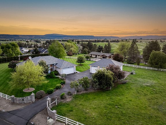 Tucked in the scenic West Hills Subdivision, this tranquil country property offers space, privacy, and timeless appeal—without the restrictions of an HOA. This immaculate single-level home on 2 irrigated acres offers 3 bedrooms, 2 bathrooms, and a versatile bonus room ideal for an office or den. The spacious kitchen features Corian countertops, ample cabinetry, and generous prep space. Vaulted ceilings complete with crown molding throughout and abundant natural light enhance the open layout. The primary suite includes an ensuite bath with a soaking tub. Outside, enjoy a beautifully maintained yard with underground sprinklers, a fire pit, and room to relax, garden, or convert to pasture—ideal for 4-H projects, horses, or steers. With three garage bays, the detached garage/shop is wired with 110 & 220 and ready for future heat. Just minutes from town, this private retreat is a true West Hills gem.