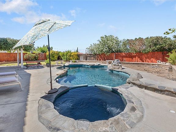 Welcome to 3143 Tourmaline Lane in Palmdale — a spacious and well-appointed 4-bedroom, 3-bathroom home offering 2,228 sq ft of comfortable living. From the moment you step inside, you're greeted by soaring vaulted ceilings and an elegant staircase that sets the tone for the rest of the home. The bright and open floor plan features new wood laminate flooring throughout parts of the home, a cozy custom brick fireplace in the living room, and a dedicated dining area that opens to a beautifully landscaped backyard. Ideal for both relaxation and entertaining, the outdoor space boasts a covered patio and a stunning custom pool and spa with a cascading waterfall. The kitchen flows effortlessly into the main living areas, while a bonus room/loft located upstairs offers the perfect space for a home office or playroom. Upstairs, the luxurious primary suite features a grand double-door entry, a spacious walk-in closet, and a private ensuite bathroom. Additional highlights include a laundry room, a paid-off solar system for energy efficiency, and a spacious three-car garage with an additional area that could potentially fit an RV. This move-in ready home truly combines comfort, function, and style in one of Palmdale’s desirable neighborhoods.