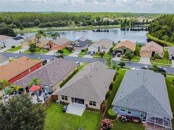 This gorgeous 4 bed, 2 bath home has so much to offer in a gated community in Wesley Chapel with a new 2019 roof!. As you enter the home, you are greeted with solid hardwood floors, an open floor plan, and wonderful 12ft. high ceiling. The first of 4 bedrooms is at the front of the home, with ample lighting from the front facing window and can also be used as a home office. As you continue in on the left, the spacious dining room also has a large window that provides plenty of light while dining and conversing at the table. There is additional space for a wine fridge or a china cabinet to display plates and other dishes within the dining room area. As you enter the living room the hardwood floors, continue and provide a great space for relaxation as well entertaining guests. To the right, the open kitchen has an island for convenience when preparing meals, as well as a breakfast nook for enjoying daily meals. Off of the living room is the spacious master bedroom. This room has plenty of space for dressers as well as extra seating. It also has a large window that provides abundant light into the room, while offering privacy as it faces the fenced in backyard. The master bathroom has a separate shower, a tub to relax in after a long day and a walk in closet with generous hanging space and storage. The bathroom also includes dual sinks and dual mirrors. Two of the other bedrooms are located on the other side of the living room and share a bathroom in the middle. These rooms have large closets that offer plenty of storage space. The 2 car garage offers extra space for storage along the walls, while still being able to fit 2 cars. Coming in from the garage, the laundry room has side by side machines, with additional cabinet space above. Entertaining is made easy in this home with the open floor plan and sliding glass doors that allow for beautiful preserve views. As you move outside, this home has a screened-in patio for outdoor dining and entertainment. The yard has been meticulously maintained and provides an abundance of space to play, relax, or landscape. This beautiful home is also minutes away from the community clubhouse that has a resort style pool and recreation center. Additionally, owners would have access to the tennis courts, shuffleboard courts, and basketball courts.