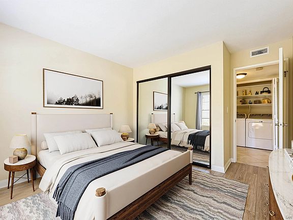 Welcome to 3144 Arroyo Vista! This beautifully designed 2-bedroom, 2-bathroom bottom-floor, single-level unit offers 1,156 square feet of open-concept living space in a prime location. Step inside and enjoy abundant natural light filling every room. The spacious living area features a fully equipped kitchen, a dedicated dining area, and a cozy gas fireplace—perfect for relaxing or entertaining. Both bedrooms are generously sized, each with an ensuite bathroom, while the primary suite offers a large walk-in closet. Out back, take in unobstructed, sweeping views of Box Canyon from your private patio—an ideal spot for morning coffee, evening dinners, or simply unwinding with a book. The unit includes central air conditioning, LVP flooring throughout, three large storage closets, and a full-sized washer and dryer. It also comes with a 1-car detached garage, an assigned parking space (#42), and ample street parking out front. Enjoy resort-style amenities with multiple well-maintained pools/jacuzzis, and four tennis courts at your leisure. Located in the highly ranked San Dieguito Union High School District, this home is just minutes from La Costa Town Square, offering shopping, dining, a movie theater, and more. Plus, you’re just a short drive to the beaches of Encinitas and Carlsbad, I-5 freeway access, and the Omni La Costa Resort.