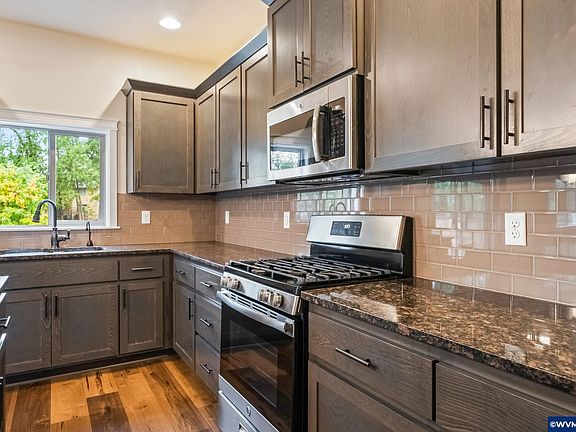 Nestled toward the end of a quiet cul-de-sac, this 4-bed, 2.5-bath Craftsman backs to a serene canal. Enjoy luxury vinyl floors, gas fireplace, and a gourmet kitchen with gas range, stainless steel appliances, and island seating. French doors open to a front office, and the primary suite features a luxurious soaking tub. Fully fenced yard, covered patio, RV parking—this one has it all! Seller is a licensed Broker in the state of Oregon. Discover quiet comfort toward the end of a cul-de-sac in this beautifully maintained 4-bedroom, 2.5-bath Craftsman-style home. Backing up to a peaceful canal and surrounded by mature trees, this 2,115 sq ft retreat offers privacy and tranquility just minutes from town conveniences.Step inside to an inviting open floor plan enhanced by luxury vinyl plank flooring and abundant natural light. The spacious living room features a cozy gas fireplace, perfect for relaxing or entertaining. A dedicated office with French doors just off the entryway provides a stylish and functional workspace.The kitchen is a dream for the home chef—complete with stainless steel appliances, a gas range, rich cabinetry, and a large center island with seating. Upstairs, the primary suite is a true sanctuary with a deep soaking tub, double vanity, and walk-in closet.Enjoy outdoor living in the fully fenced backyard with a covered patio overlooking lush greenery and the quiet canal. The home also features RV parking, a double-car garage, and thoughtful landscaping in both front and back yards.If you're looking for a blend of peaceful surroundings, functional design, and elegant finishes—this is the home for you!