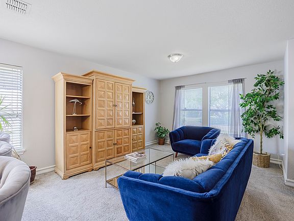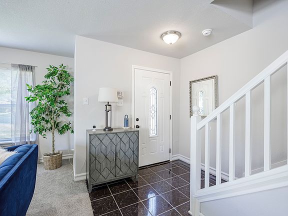 This stunning two-story, three-bedroom home offers modern elegance and spacious comfort. The gourmet kitchen features black quartz countertops, white cabinetry, and stainless-steel appliances. A marble fireplace anchors the living room, creating a warm and inviting atmosphere.