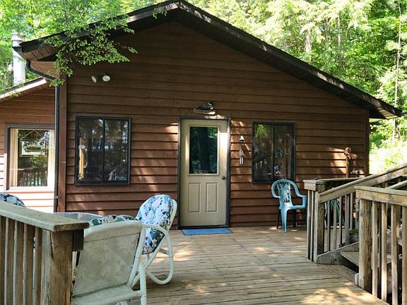 The only property currently listed for sale on Connors Lake!! Fully remodeled 2 BD/1 BA amazing cabin, knotty pine interior, and vaulted ceiling in the great room. Sunbeams shine throughout with many windows facing the water and a kitchen skylight. Beautiful sand frontage invites you and the kids to play in the water. Two large garages for cars and all your toys. Seller is including many items with this home, ask realtor for all the details. Property sells fast on this famous Northwoods Lake, come check it out!
