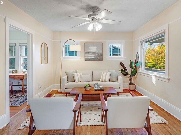 This beautifully maintained Roseway home is filled with vintage charm and modern updates throughout, offering flexibility and comfort in a classic setting. Fresh exterior paint and newly refreshed landscaping with sod, barkdust, and plantings enhance its curb appeal. Inside, hardwood floors, built-ins, and a clawfoot tub highlight timeless craftsmanship. Major updates include a roof, gutters, and furnace (2015), an earthquake retrofit (2016), and energy-efficient vinyl windows. Stainless steel appliances, a two-car garage, fenced yard, and ample off-street parking add everyday convenience. Currently used as a two bedroom/large primary suite with double closets or convert back to a three bedroom. Large basement with tall ceilings and possibility to finish and create more living space. Just blocks to Glenhaven Park and Rose City Golf Club. Appliances included. With its covered front porch and move-in-ready condition, this Roseway gem perfectly blends character and care. [Home Energy Score = 7. HES Report at https://rpt.greenbuildingregistry.com/hes/OR10183212]
