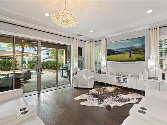 Welcome to 3144 Players View Circle, a stunning executive home in the exclusive guard gated community of Reserve at Alaqua. This elegant Fitzgerald model features 5 bedrooms, 5.5 bathrooms and around 4,000 sq ft of luxury living, including an oversized driveway and a 3-car garage equipped with an EV charger. Step inside to engineered hardwood floors and a bright, open layout filled with upscale finishes. The gourmet kitchen is a chef’s dream, with light cabinetry, stone countertops, a natural gas cooktop and a farmhouse sink. A massive walk-in pantry and butler’s pantry make entertaining effortless.A temperature-controlled wine room adds a refined touch, holding over 200 bottles. Enjoy meals in the formal dining area or relax in the spacious family room. A private office with built-ins provides the ideal work-from-home space. The first floor also includes a guest suite with its own en suite bath and the 2nd floor, a second family room with a wet bar expands the living space. Three additional bedrooms each have private bathrooms. The luxurious primary suite features a spa-like en suite with garden tub, walk-in shower, and two custom closets. Step outside to your personal oasis with a saltwater, gas-heated pool and spa. An outdoor kitchen and covered patio create the perfect entertaining space. The landscaped backyard offers both privacy and beauty. This home sits next to a peaceful park and is close to the driving range and clubhouse. Enjoy access to a Gary Player-designed golf course and 24/7 guard-gated security. Located near top-rated schools including Heathrow Elementary and Lake Mary High. This home blends luxury, comfort, and lifestyle—don’t miss your chance to make it yours.