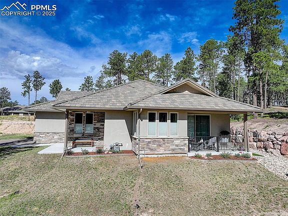Auction property. This property has been placed in an upcoming reserve auction. The list price is the opening bid only & does not indicate the reserve or sale price. Bidding to start from list price! Nestled in the serene Black Forest, this paired patio home is part of an exclusive 26-home community, offering the benefits of new construction without the wait. Low-maintenance living welcomes you with a bright open space flowing from foyer to dining and living area, highlighted by wood flooring, high ceilings, and breathtaking forest views. The kitchen features stainless steel appliances—induction cooktop, convection/air-fry microwave, and convection oven—and 48" soft-close cabinets w/ pull-outs. Quartz surfaces extend throughout kitchen, laundry and bath. The primary retreat features an ensuite with heated floors, a frameless anti-fog LED mirror, walk-in closet, and low-pile carpet. Modern comforts include premium HVAC with whole-home humidifier, tankless water heater, upgraded lighting with dimmers, and USB outlets in every room. Additional highlights: private office, vapor-sealed crawl space, attic storage, and finished garage with side-mounted opener. Stucco, stone, and wood siding pair with a durable concrete tile roof for timeless curb appeal. A low-maintenance patio provides just enough space for pets to step outside. Beyond the home, explore nearby trails at Black Forest or Fox Run Regional Park. Golfers will appreciate proximity to King’s Deer Golf Club in Monument and the renowned Flying Horse Resort and Club, offering championship courses, dining, and leisure amenities. For convenience, the home is only 20 minutes from the Air Force Academy, 25 minutes from downtown Colorado Springs or Garden of the Gods, and under 40 minutes to Fort Carson. Whether you’re drawn to the natural setting, intentional community, or refined craftsmanship, this home offers a rare opportunity to live in harmony with nature—without sacrificing modern comfort.