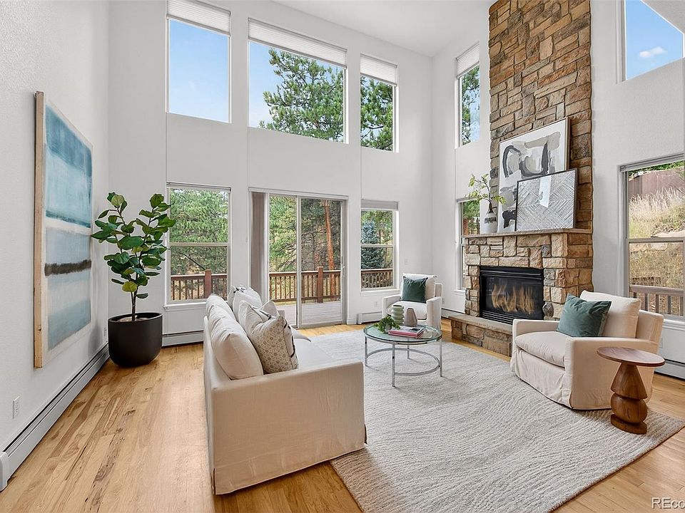 Open Saturday 11am - 2pm - Tour four great homes in the Evergreen/Kittredge area this Saturday, inquire for details. Welcome to your mountain retreat in beautiful Evergreen! The inviting foyer opens to a spacious formal dining room and an office with French doors—easily converted into a main-floor bedroom with adjoining full bath. The soaring two-story living room features a floor-to-ceiling stacked-stone fireplace, walls of windows, and sweeping mountain views. The open layout flows to a casual dining area and kitchen with stainless steel appliances, alder cabinetry, granite countertops, and hickory floors. Just off the living area, a large deck is perfect for morning coffee, evening dinners, or gatherings with friends. The entire home has been revitalized with fresh designer paint throughout, along with brand-new plush carpet upstairs and in the finished basement, giving it a crisp, modern look and making it truly move-in ready. The expansive primary suite offers stunning views, a five-piece en-suite, and a large walk-in closet. Two additional bedrooms share a Jack-and-Jill bath, while a roomy loft offers space for a reading nook, playroom, gym, hobby area, or second office. The bright walk-out basement includes a pool table area, fourth bedroom, full bath, and a large unfinished section with a partially finished room—perfect for a gym, media room, craft studio, man cave, or personal retreat. An oversized three-car garage—two bays front-facing and a tandem third in back—offers high ceilings and plenty of room for all your mountain toys and gear. The private yard boasts a sauna, hot tub, and seating area, all in a peaceful setting that feels like your own mountain hideaway. New roof installed August 2023. Conveniently located just 9 minutes from downtown Evergreen, 4.5 miles to Lair O’ the Bear Park, 15 minutes from the iconic Red Rocks Amphitheatre, 45 minutes to downtown Denver, and 1 hour 20 minutes to DIA—close to everything, yet a world away.