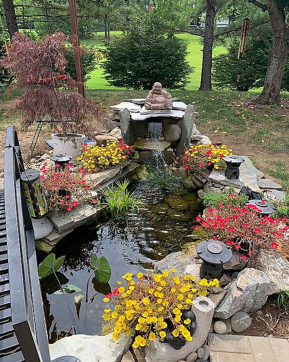We have an open living space with kitchen, 8ft granite island that seats 5, fireplace and livingroom which is great for entertaining. This are flows out through double patio doors to the bbq and pond area. A playhouse with swings and slides we back on to a green common area with no neighbors at the back.