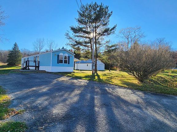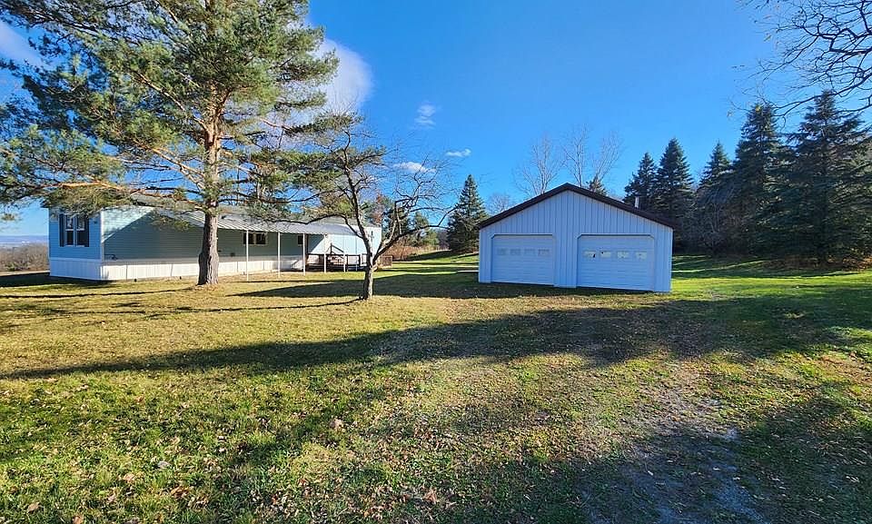 Your perfect country setting awaits! Just a short drive into the Village of Watkins Glen. This property has public water and sewer! Mobile home is in good condition on poured concrete pad, perfect affordable homestead or live in while building your new home. Carport and detached oversized 2 car garage. Home features open kitchen and dining, 2 nice sized bedrooms and 2 full bathrooms.
