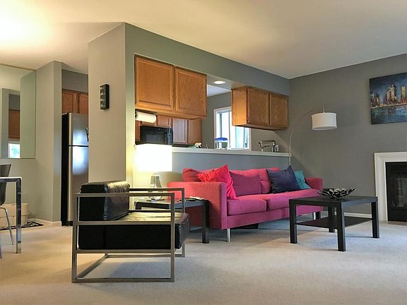 Condo. NE Grand Rapids. Ground floor end unit. Spacious living room with gas fireplace and slider to private deck. Separate dining area. Kitchen with snack bar and stainless steel refrigerator, 5-burner gas stove, dishwasher, and new microwave. Large master suite with full bathroom, walk-in closet, and linen closet. Guest bedroom or office and 2nd full bathroom. Other features include laundry, one-stall attached garage, and common entry with intercom security system. All appliances remain with the condo. Convenient location close to the expressway, Knapp's Corner, restaurants, shopping, and only 10 minutes to downtown Grand Rapids.