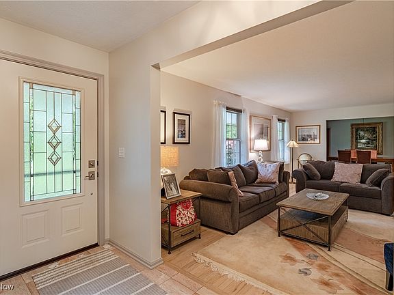 Tucked behind manicured garden beds and framed by mature trees, this sprawling ranch-style residence offers a rare balance of graceful elegance and everyday ease. Set in one of Pepper Pike’s most coveted enclaves, the home delivers a sense of quiet luxury just moments from the city’s best dining, shopping, and conveniences. An inviting front porch sets the tone for what lies within—where a leaded glass entry door opens to a warm, welcoming interior defined by timeless materials and thoughtful design. The living room exudes sophistication with rich hardwood floors and a striking pink marble fireplace that commands attention while offering comfort. This refined ambiance continues into the formal dining space, where light and flow invite both intimate dinners and grand celebrations. At the center of the home, an open-concept kitchen and family room embody effortless living. Stone countertops, classic tile underfoot, and a full suite of newer appliances combine form and function, while the adjacent hearth area—with its brick fireplace and casual breakfast bar—adds a cozy, communal touch. The vaulted family room impresses with dramatic skylights, sweeping windows, and a seamless connection to the expansive back deck. A tranquil primary suite offers a private escape, complete with multiple closets and a spa-inspired bath featuring a jetted soaking tub and a step-in shower. Three additional bedrooms—all richly appointed with hardwood flooring—extend comfort and versatility for family, guests, or creative use. Below, a fully finished lower level enhances the home’s offerings, providing generous space for recreation, hobbies, or an additional lounge retreat. Outdoors, the experience unfolds with a screened-in gazebo, a brick patio tucked beneath a canopy of trees, and a deep, tranquil backyard that offers both beauty and seclusion. Experience the rare harmony of space, style, and setting at 31449 Pinetree Road—where refined living meets timeless appeal.