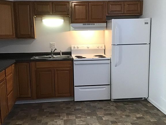 This stunning two-bedroom unit features large rooms, new flooring throughout, an eat-in kitchen, new cabinets, new appliances, and large bedrooms with full-length mirrored closet doors. Tenant pays electricity and a $50 monthly water charge, trash removal is included in rent. Located near the Golf Course, this property includes an on-site laundry with a wi-fi hot spot and vending machines in the Laundry Room and a picnic area with charcoal grills near the playground. $50 application fee per tenant. 1 year lease. 24/7 maintenance team No smoking. Pets are negotiable. Two parking spaces. Tenants covers: Electric, $40 monthly water charge, and must supply their own WiFi. Landlord covers: Trash removal, lawn care, and snow removal.
