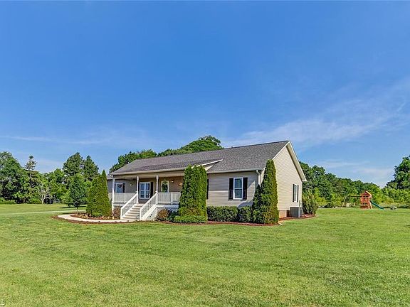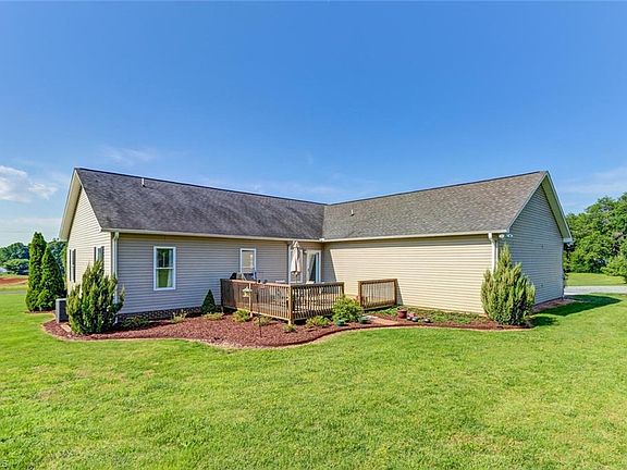 Cute & Clean! Maintenance free ranch w/great curb appeal. Rocking chair front porch (swing included)hardwoods, 9 & 12' ceilings, gas fpl. Mstr Bth, Jetted tub ,sep.shrw. Adjoining huge Mstr Br.. Split Br plan. Kitchen w/granite ctops opens to great room + large pantry. Moldings galore, 718 SF att garage PLUS large new det bldg. w/electric, too nice to call a shed. Walk up stairs to floored stg. Level acreage . New 15 Seer HVAC & new dishwasher. 26 x 20 detached Man Cave . Move in ready & PRICED TO SELL!