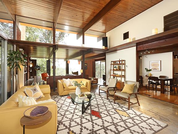 This is a rare two-story post and beam home on a knoll with city views in two directions. With its open floor plan, exposed wood beams, and walls of glass it is a work of art in which one is graced to live. This original vision of architects Hawkins and Lindsey has been meticulously maintained by just two owners since it was custom-built in 1964 on these two view lots in Glendale's sought-after Montecito Park neighborhood. The living and dining rooms with their wide plank flooring enjoy a striking view of downtown Los Angeles. The oversized family room/conservatory is like none I have ever seen with a 14-ft ceiling, an indoor garden, and a tall wall of glass overlooking the lush rear grounds and pool. The kitchen is updated yet preserved, and true to the original design. The main level continues with three bedrooms and two updated baths, with the rear two bedrooms enjoying a view out over the Crescenta Valley. There is also a very cool reading lounge with a custom bar. Downstairs there is a large master retreat with its own view, large closets, and a remodeled master bath. With over 13,000sf, these parcels have a grass play yard, an elevated viewing deck, outdoor dining areas, a dog run, and a beautiful pool and spa. A few additional features of this exceptional home are newer roofing, solar panels, central air and heating, an attached two car garage with electric car charging station, and the award-winning schools of this neighborhood.