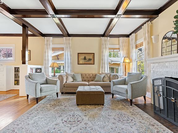 Quintessential Portland Rose City Park bungalow full of sweet, sweet charm! Perched above street level, this fabulous home greets you with a covered front porch from which to sip your iced coffee and wave to neighbors. Inside, you'll be welcomed into a storybook living room with hardwood floors, a cozy gas fireplace and box beam ceilings behind which lies a formal dining room with period built-ins and ample space for entertaining. Two good sized bedrooms with large closets and a full bathroom with a clawfoot tub are tucked to the side of the house. The second floor boasts the primary bedroom and bonus space, a walk-in closet and second full bathroom. Back downstairs, the kitchen overlooks, and opens up to, the breathtaking back deck and lush yard filled with the scents of Dahlia, Jasmine and Lilac. A detached garage/workshop has room for your projects and has its own sub panel. AIR CONDITIONING. Close to parks, major arteries for an easy commute and just down the street from the bars and restaurants on Sandy Blvd. Bike Score 98! [Home Energy Score = 1. HES Report at https://rpt.greenbuildingregistry.com/hes/OR10215215]
