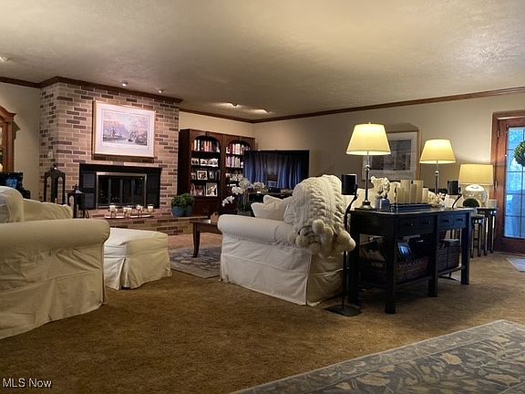 This home is the perfect blend of class and comfort. Located on the corner of Steubenville Rd. and Autumn Rd., the nicely landscaped two acre lot with frontage on both roads gives you some room to spread out and add more outbuildings if desired. From the concrete driveway, a walkway takes you through the front yard to the entry. Inside, a large living room with a nice brick fireplace provides a lot of room to entertain. French doors open from the living room to a beautiful screened porch with vaulted ceilings, which then opens onto a fenced-in patio featuring an in-ground pool. A pool house finishes the outdoor living space. The rest of the acreage contains a nice mix of trees and open land, making the property feel private even though it is right on a main road. There is an outdoor shed for extra storage as well. Back inside, the beautiful kitchen finished with cherry cabinets is located off of the living room and is the central heart of the house. The appliances, which are all high end, will stay for the next owner. Many other details really make this a luxurious kitchen. The dining room is conveniently located right off of the kitchen. Also branching off from the kitchen is a laundry/mud room with a new farmhouse sink and lots of storage as well as the entrance to the attached two car garage and the stairway to the partially finished basement. A hallway leaving the kitchen in the opposite direction takes you to a nicely updated full bath, two large bedrooms, and the main bedroom at the end of the hall. This room has plenty of space, a beautifully finished ensuite bath with a double vanity, and another set of French doors opening onto the patio. The current owners previously used this area for a hot tub right off of the bedroom.