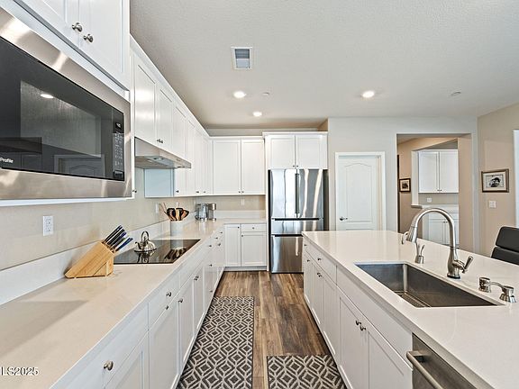 [OPEN HOUSE: Saturday 10/4 from 2-4pm] Prime location only 10 minutes to the freeway, 6 min to Northern Nevada Medical, Safeway and CVS are 6 min, Costco at Galleria Shopping is 13 min. Schools are also convenient: Marvin Moss Elementary (4 min), Mendive Middle School (6 min) and Reed High School (8 min). Located in highly sought-after D'Andrea community of Sparks, views of city skyline, no rear neighbors, and a highly updated home. Tech-forward features include a whisper-quiet, insulated 3-car garage with a WiFi control opener, garage wiring ready for EV charging station, a 50-amp induction cooktop, touch-activated faucet, instant hot water dispenser, hardwired internet, and Ring doorbell. The tankless water heater, dual-zone WiFi-enabled HVAC system, and water softener add both efficiency and comfort. Enjoy the convenience of automatic lighting, auto window shades in the living room, and a smart front door lock for seamless, secure access. Every detail of this home has been upgraded, from water- and scratch-resistant flooring to the beautifully landscaped front and backyard, complete with accent lighting and a tranquil water feature. The primary suite offers a spa-like retreat with dual sinks, a garden tub, walk-in shower, and custom built-in closet storage. The spacious laundry room includes two full walls of cabinetry and a utility sink for added functionality. Located just moments from D'Andrea Golf Course and local amenities, this home blends high-end finishes, prime location, and intelligent design to create a truly exceptional lifestyle.