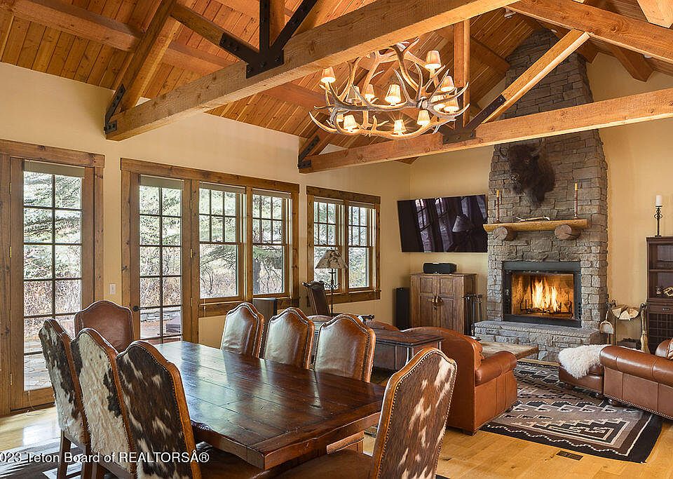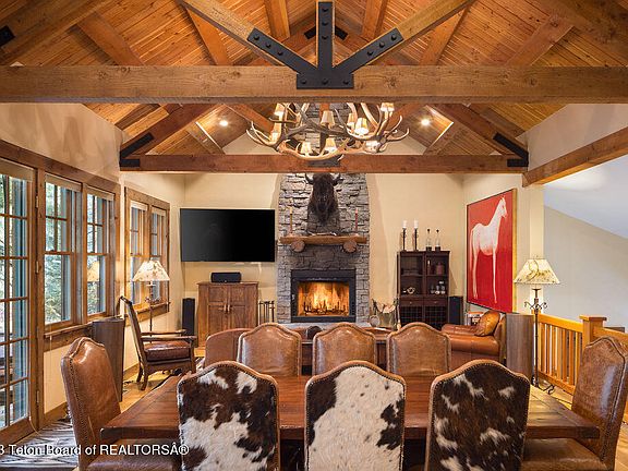 A rare opportunity to own a highly sought after spacious ski-in/out Granite Ridge Homestead located steps from the base of Jackson Hole Mountain Resort and Four Seasons Resort. Nestled into its forested surroundings, this 4 bedroom, 4.5 bathroom residence showcases a gourmet kitchen and a grand living room with a stone fireplace as its cozy focal point. French doors open to large, beautiful slate deck with an in-ground hot tub; the ideal place to dine or decompress. With the ability to accommodate 2 large vehicles, and additional space for your mountain essentials, the garage is another key feature of the home. Resort zoned for short-term vacation rentals, the property is being sold completely furnished for a luxurious and seamless transition.