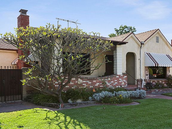 Quality craftsmanship and character fill this charming 1920s cottage, well cared for by the same family for over 40 years. Welcomed by a beautiful covered porch, step inside the cozy living room with raised brick hearth, flanked by floral stained-glass casement and front picture windows, which lead directly into an expansive dining room with built-in china cabinet. The spacious kitchen has a large pantry, custom oak cabinetry, a fully functional, vintage diner booth, and side door, providing driveway access as well. Along the hallway are three bedrooms and two bathrooms (one en suite). What makes this home quite special is the enormous covered patio, built-in barbecue, fruit trees and rose bushes, creating a perfect sanctuary for entertaining. Located in the neighborhood adjacent to Arceo Park, El Monte High School, and various community centers, this very special El Monte home not only lives large, but also provides fantastic indoor and outdoor entertainment areas...a perfect place for the next generation to call home for decades to come.