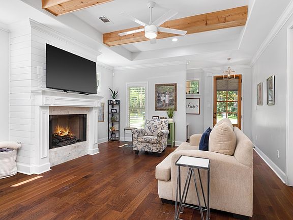 Immaculate 3-bed, 2-bath split bedroom floorplan built in 2020, perfectly blending classic cottage curb appeal with modern finishes inside. OPEN Kitchen Concept with beautiful granite countertops, large island with power, stainless steel appliances, 5 burner gas cooktop/range, Ventahood, soft close cabinet drawers, Stunning cedar beams through out the open-concept layout. High 9 ft smooth painted ceilings, round bull nose corners, Hardwood floors (No Carpet),Tucked in a quiet cove with a spacious fenced back yard, perfect for pets or entertaining, Expanded concrete patio, plus storage shed, Plantation Shutters, Luxury Bathrooms with tile showers & floors, granite, separate walk in laundry room, 2 storage drop offs with bench & hooks, Vaulted primary BR, large walk-in closet, jetted tub, Close to grocery, restaurants, & shopping, Just 12 min to Downtown! Refrigerator, Washer & Dryer included. Move in Ready & better than brand new!