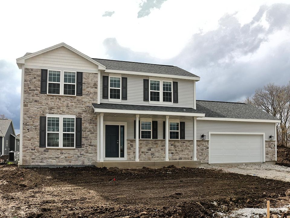 New, open concept 3 bedroom, 2.5 bathroom 2-Story with plenty of space for all. The ''Pathway Series from 'Stepping Stone Homes'' Haverford Model is located in the Loumos Heights Subdivision. The spacious kitchen, which overlooks a generous dining area includes a pantry, upgraded cabinetry with crown molding, quartz tops, oversized island, and stainless steel appliances. The master suite has 2 sink basins with a comfort-height vanity, a large walk-in-closet and a walk in shower. The basement, with egress window and plumbed for a future bath, is ready for all of your new and exciting ideas. Includes a builder warranty, concrete driveway with walk to the front stoop and rough grade.