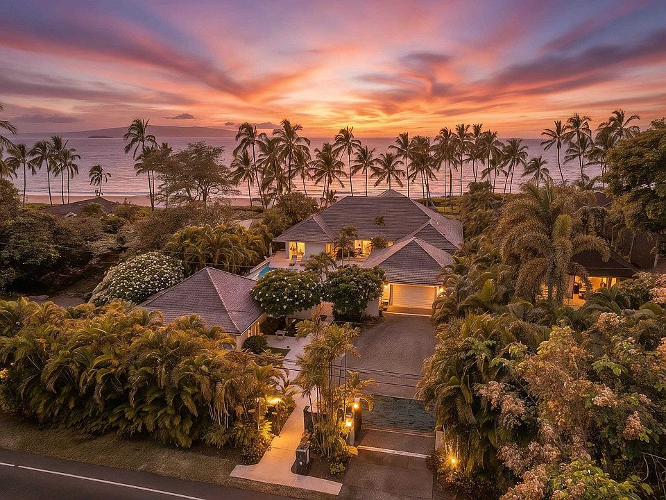 Timeless Hawaiian Estate on Keawakapu Beach Welcome to the quintessential Maui oceanfront estate, ideally situated on Keawakapu Beach—widely regarded as one of Maui’s most beautiful stretches of sand. This timeless Hawaiian residence embraces its unrivaled setting with approximately 2,500 square feet of covered outdoor living space, perfectly suited for beachfront lounging and entertaining. Designed with architectural integrity and island sensibility, the home features traditional Dickey rooflines topped with black glazed tiles imported from Japan. A custom-crafted electronic gate opens into a private, walled compound that includes the main residence, a detached two-bedroom guest cottage (Ohana), a two-car garage with workshop, and a beautifully landscaped courtyard with a pool and spa—creating a secluded oasis for relaxed, luxurious living. Inside the main home, a soaring great room with a working fireplace serves as the centerpiece, complemented by an open-concept kitchen and expansive glass walls that frame breathtaking ocean views while preserving privacy. Thoughtfully elevated on a gentle knoll, the home offers unmatched sight lines across the Pacific. The main residence includes three bedrooms and four bathrooms, all designed with ease of access and comfort in mind. The detached two-bedroom, one-bath Ohana is finished to the same high standard, ideal for visiting family or guests. Set on 0.8 acres, the estate flows seamlessly from lush lawn to the beach, where a protective lava rock point cradles the property and collects soft white sand along this dramatic, crescent-shaped shoreline—one of the largest and most coveted on the island. A rare opportunity to own a true legacy property on Maui’s finest beachfront.
