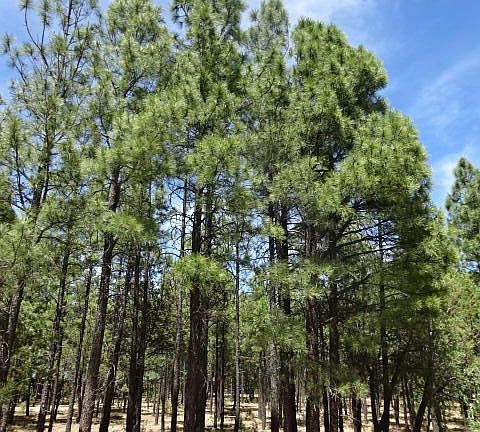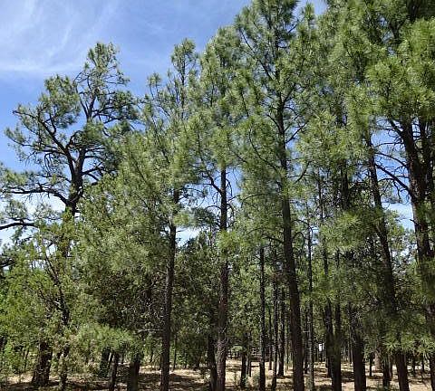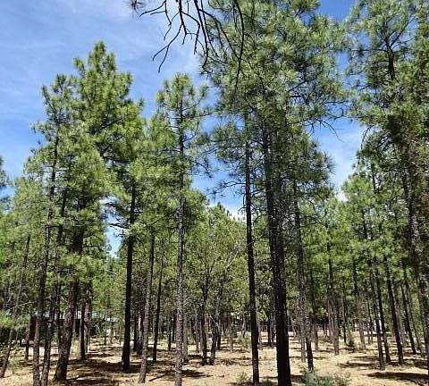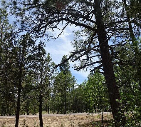 1.42 acres of tall pines overlooking forested lands across Rim Road. Utilities are available (buyer to verify costs). Paved Road! Rare in-town find!