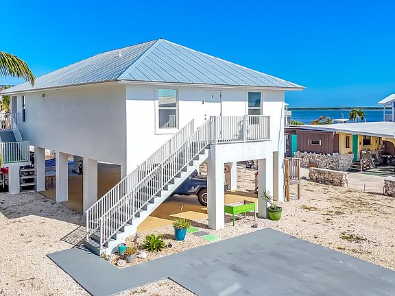 Welcome to this coastal escape on Big Pine Key, in the Lower Florida Keys. This newly built 2022 home combines modern design with the rugged durability required for island living. This 2-bedroom, 2-bathroom residence offers 1,260 sq ft of stylish, open-concept living space designed to showcase the natural beauty of the surroundings. For those seeking life on the water, this property is a must-see. The private, on-site 38' concrete boat dock offers direct access to the renowned Bogie Channel, a sought-after haven for anglers and divers alike. Within minutes, you can be casting your line or exploring the world-class dive sites.Step inside and be greeted by an airy, sunlit open floor plan where the living, dining, and kitchen areas blend seamlessly. The kitchen features white cabinets with a large island that invites gathering and entertaining. Expansive impact-resistant windows and doors frame canal views, allowing natural light to flood the space while offering storm-ready protection. Built with longevity and storm safety in mind, this home features a metal roof, impact-rated windows, and doors for added hurricane protection. The elevated design provides extra peace of mind and allows for covered parking below. With room for 4+ vehicles, a boat trailer, or outdoor recreational gear, the space is functional and versatile.Savor the island breeze from the rear porch--perfect for morning coffee or evening cocktails--while soaking in canal views. The dual staircase access adds convenience. Beneath the home, the expansive concrete slab provides an open-air retreat for hosting friends, grilling fresh catches, or simply relaxing in the shade. Big Pine Key is celebrated for its laid-back charm, stunning natural surroundings, and easy access to world-class fishing, diving, and boating. You'll be part of a community that balances tranquility with adventure. Whether it's the call of the open sea or the allure of island serenity, this property offers the best of both worlds