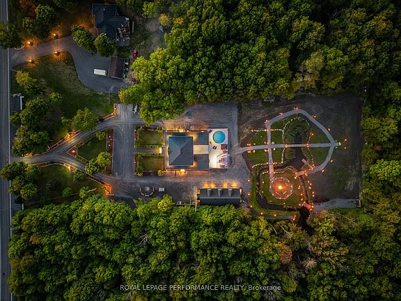 PRESTIGIOUS 3-Acre Luxury Estate | Alexandria, Ontario. Step into a world of elegance and refined living at this extraordinary 6,000 sq. ft. custom estate. Nestled on 3 manicured acres with no rear neighbours, this private retreat blends architectural grandeur with resort-inspired amenities creating a property unlike any other in Eastern Ontario. Crafted with impeccable detail, this home boasts 5 + 1 bedrooms and 4 full baths, all adorned with extensive millwork, soaring ceilings, and granite finishes throughout. The chef's kitchen is a masterpiece, featuring custom cabinetry, a sprawling island, and professional-grade appliances. The great room, with its dramatic stone fireplace and floor-to-ceiling windows, provides a breathtaking backdrop for both intimate evenings and grand gatherings. A fully finished lower level offers a bar, additional fireplace, and separate entrance ideal for an elegant entertainment lounge, nanny quarters, or private in-law suite.The estate offers a lifestyle of leisure, luxury, and natural beauty; Private shooting range for recreation, a 2,150 sq. ft. 4-door garage (9 x 10 doors) with loft storage perfect for a collector or hobbyist, a Tiki Island escape and heated pool for resort-style living. Expansive covered porches encircling the home, perfect for entertaining in every season. Professionally designed landscaping with stone features, mature trees, and enchanting vistas. A property alive with nature - its not rare to wake up and find 20 deer grazing peacefully in your backyard. Limitless possibilities from hosting elegant weddings to creating an exclusive Airbnb retreat, the opportunities are endless. This estate is equally suited as a luxurious private sanctuary or a revenue-generating investment. The location is situated in the tranquility of Alexandria yet ideally positioned along the 401, this estate offers seamless access to Montreal, Ottawa, and Toronto. A rare opportunity to own a world-class property in a prime location.
