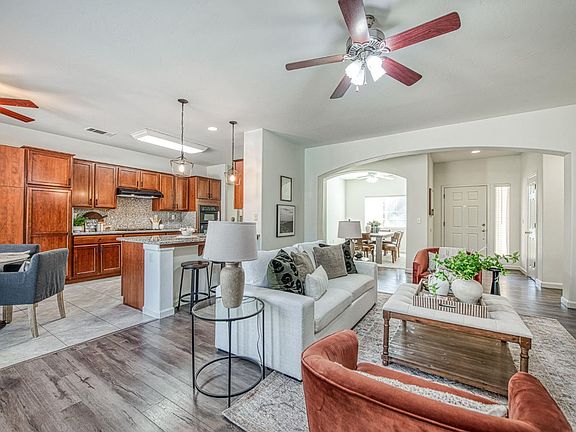 This charming property showcases beautifully modern updates, including refreshed flooring and renovated kitchen and bathrooms. The kitchen and dining nook feature easy-to-maintain ceramic tile flooring that elegantly complements the granite countertops and stylish backsplash. Ample storage throughout the kitchen and dining areas ensures both convenience and functionality. Nestled on a quiet cul-de-sac, this inviting single-level home offers three bedrooms and two bathrooms, encompassing 1,821 square feet of living space on a 7,700-square-foot lot. The open living room, complete with a cozy fireplace, creates a warm and welcoming atmosphere. The formal dining room, which can easily serve as an office or bonus room, provides versatile space to suit your needs. The primary suite boasts a spacious walk-in closet and a luxurious bathroom with a soaking tub, perfect for relaxation. Outside, the property impresses with stunning curb appeal and a low-maintenance backyard featuring stamped concrete, a sparkling pool, a covered patio, and a 12' x 10' storage shed with electricity. Move-in ready and meticulously maintained, this Clovis gem offers everything you've been searching for.