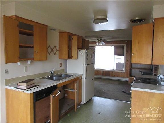 House sits on a large lot, partially fenced back yard, has a pull through driveway and easy access to Hwy 97. Bring your renovation ideas and make this home shine!