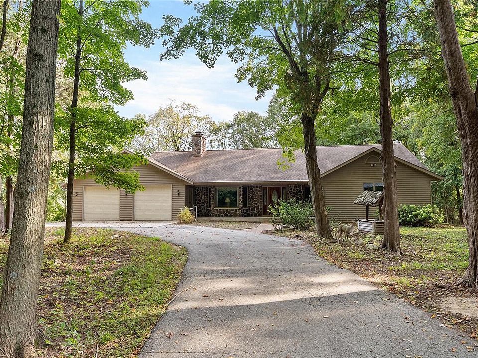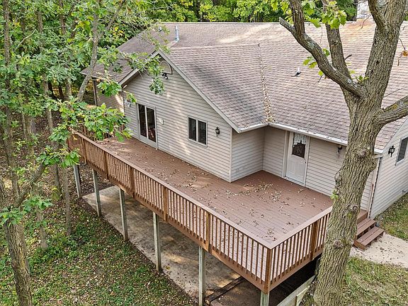 Welcome to your own private retreat! Nestled on 5 wooded acres this spacious ranch home offers the perfect blend of comfort and natural beauty. Featuring 4 bedrooms and 3 full bathrooms. Huge kitchen with pull-out cabinetry for easy storage and organization, while the main-floor laundry adds convenience to your daily routine. Enjoy beautiful views year-round with Anderson windows throughout. Step outside onto the brand-new composite deck, ideal for gatherings or quiet evenings overlooking the property. The walk-out basement offers full exposure, leading to a generous patio. Zoned in-floor heating keeps the home cozy and efficient in every season. Outside, a 40x40 pole building provides endless possibilities for storage or a workshop. This property truly has it all. Come check it out!