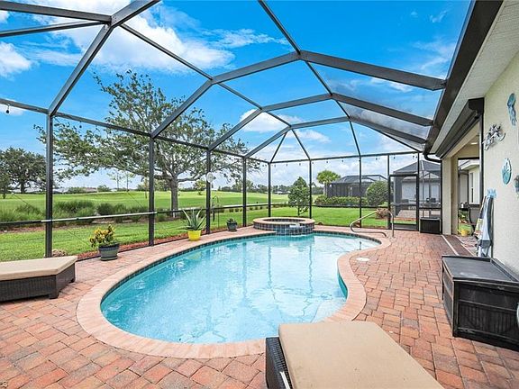 Nestled within the prestigious, 24-hr guard-gated enclave of River Hall Country Club, this exquisite single-story home offers the perfect blend of luxury and FL lifestyle. Accompanied by a full golf membership to the renowned Davis Love III-designed Championship Golf Course set to be resident only at the end of this year, this home invites you to experience the pinnacle of resort-style living. 4 generously appointed bedrooms, 3 spa-inspired bathrooms & 2,032 sq.ft. of meticulously curated interiors exemplify elegance and modern comfort with no upgrade spared. This popular open-concept “Trevi” floorplan welcomes you with timeless plantation shutters, rounded drywall corners, upgraded light and fan fixtures, diagonal tile & luxury vinyl flooring throughout, Culligan whole-house water filtration system, FPL-certified EV charging, water heater(2025), extra wide driveway, custom closet systems and more. Entertain to your heart's delight in a kitchen adorned with bespoke countertops, custom beverage bar, custom range hood, reverse osmosis kitchen faucet, above & below cabinet lights & more. The heart of the home opens to an inviting saltwater pool & spa with a heater rebuilt in Fall 2024. Breathtaking sunsets from your NW facing and recently re-screened lanai offer sweeping vistas over the 4th tee box with exceptional views of the 3rd and 4th holes. This home sits outside of a flood zone and is fortified with hurricane impact windows, electric roll-down Storm Smart kevlar shutters with new screens on the front porch and lanai, a 500-gallon buried propane tank powering a whole-house app-controlled Generac generator, and whole house gutters. Internet, cable, irrigation, and lawn maintenance are all included in the HOA dues, allowing you to focus entirely on enjoyment. As a resident of River Hall, you’ll have access to an extraordinary suite of amenities. The 14,000 sq. ft. Town Hall Amenity Center features a state-of-the-art fitness center, and a robust calendar of community events. Outdoors, indulge in the 8,000 sq. ft. resort-style lagoon pool, tennis and pickleball courts, bocce ball, a shaded tot lot, and multipurpose sports field. Golf enthusiasts will delight in the championship 7,000+ yard golf course, offering 18 masterfully designed holes and a 3-hole short course, complemented by world-class practice facilities—including a 400-yard double-ended range, expansive putting greens, chipping and bunker zones, and a dedicated short game area. After a round, unwind at the elegant Clubhouse, offering both casual and fine dining, a private pool and locker rooms. Just 15 minutes from the vibrant heart of downtown Fort Myers—with its eclectic mix of fine dining, boutique shopping, and cultural attractions—and mere moments from the Caloosahatchee River and Intracoastal access, this home positions you at the crossroads of tranquility and convenience. For a full list of upgrades, please see the Upgrades & Features flyer. Golf cart & furnishings are negotiable