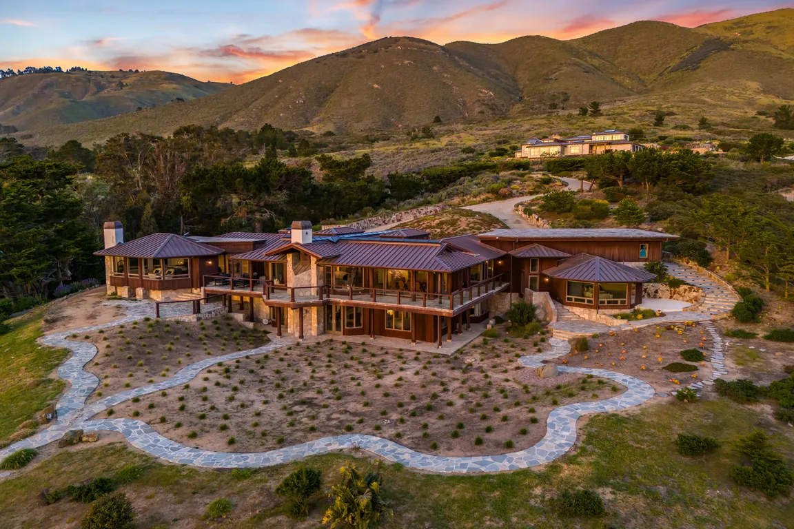 Modern elegance framed by coastal serenity. This exquisite four-bedroom, six-bathroom estate is nestled between the Santa Lucia Mountains and the Pacific Ocean, offering nearly six acres of privacy and sweeping views of the Carmel coastline. Sunlight pours through skylights and vast windows, illuminating a vaulted living room that flows into an ...