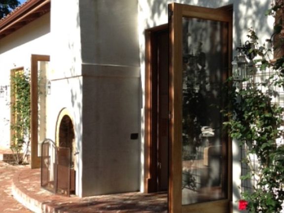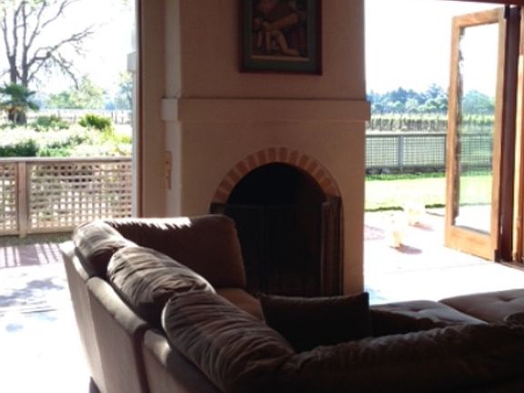 Waive to ballons as you sip your coffee by the custom byily 10inch thick walls Stained concrete floors Central heat and air