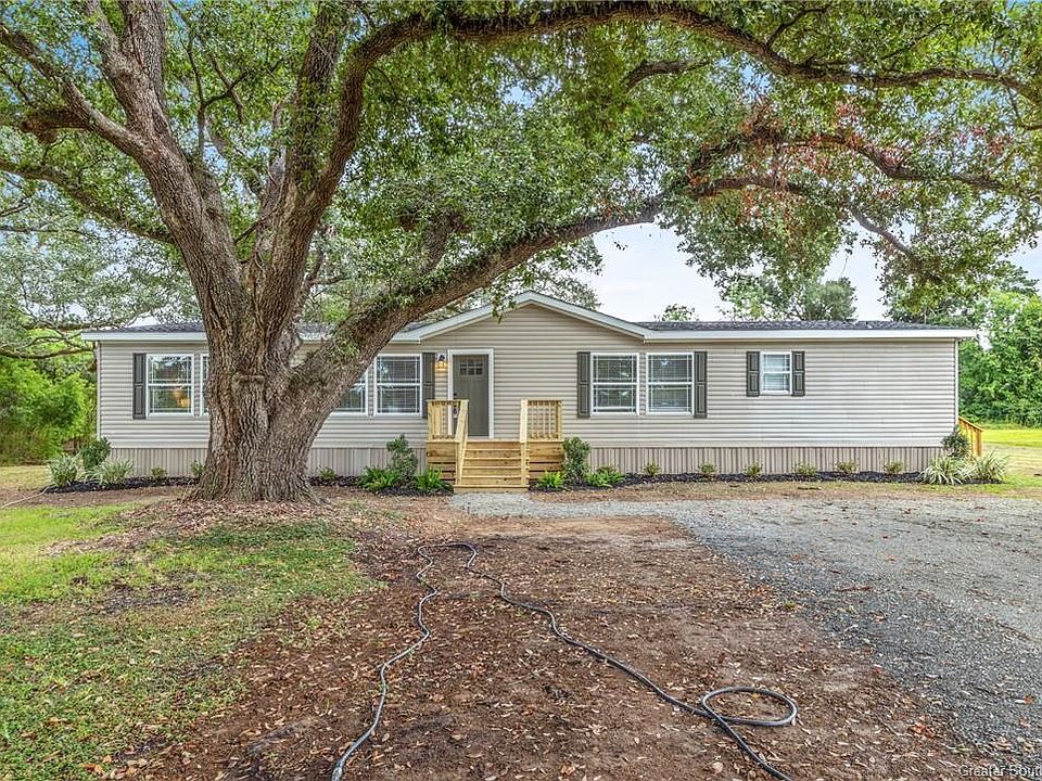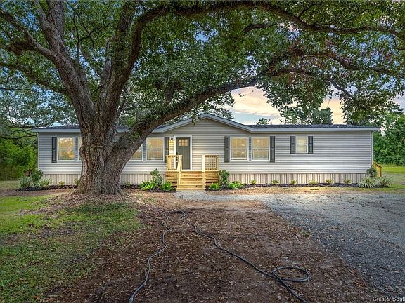 Discover the perfect blend of comfort and style in this 2005 double-wide mobile home, nestled on a spacious 1.17-acre lot adorned with majestic oak trees. Offering 2,275 square feet of renovated living space, this home features three bedrooms and two bathrooms, each designed with modern living in mind. The open floor plan is ideal for entertaining and everyday life, complemented by recent upgrades including new plumbing fixtures, fresh interior paint, and durable vinyl flooring throughout. Step into the upgraded kitchen and bathrooms, where elegant quartz countertops meet new stainless steel appliances--including a dishwasher and range/oven--marrying functionality with style. The home's exterior isn't left behind, boasting fresh landscaping, new doors on the front and side, and newly installed decking. Rest easy knowing the roof, replaced post-hurricane, secures your investment. Inside, the spacious living room with a formal dining area awaits, leading to two large master suites. One suite features a cozy wood-burning fireplace, adding warmth and ambiance, alongside a luxurious soaking tub and separate shower. The second suite offers a walk-in shower, a second soaking tub, and double sinks, ensuring convenience and comfort. Located safely outside of any flood zones, this property offers peace of mind and security. Additionally, it qualifies for USDA 100% Financing, making it an excellent opportunity for those seeking a stylish, comfortable home without the financial strain. Don't miss out on making this your new haven--explore the blend of modern upgrades and serene living today!