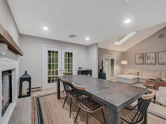 Tastefully remodeled this beautiful contemporary ranch highlights today's preferred designer interior selections. 3 inviting bedrooms, 2.5 pleasing baths. Sun filled living with skylight, dining with fireplace ambiance, gorgeous kitchen with island, custom lighting, quartz counters, tile backsplash and stainless appliances. Spacious family room and comfortable air conditioning throughout. The peaceful screened porch, deck and firepit area compliment its private woodland setting for treasured relaxation. Impressive exterior storage for your favorite play gear. Convenient Tesla charger. Closeby to Timber Trails well loved amenities. A home and fine lifestyle you can enjoy this summer!