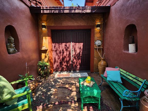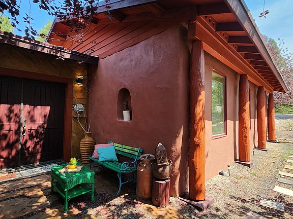 Sustainable Award Winning Strawbale home on incredibly PRIVATE 2.52 acres! Mountain Living Magazine described a tour of the home as an ''artistic journey where every detail seems to have been put in place with creativity and care''. This naturally elegant passive and active SOLAR home includes in-floor hydronic heating (even in the garage!),Sierra Pacific windows, Trex deck,Viking appliances, upgraded metal roof (new in 2022), stained concrete and bamboo flooring. This custom home was sight specifically designed with a NATURAL ROCK OUTCROPPING EXPOSED IN THE LIVING ROOM! A flexible floor plan makes it easy to add a 3rd bedroom. An interior balcony overlooks the great room & offers a wonderful place to relax. Modern life in an eco friendly, energy efficient home. Owner/Agent
