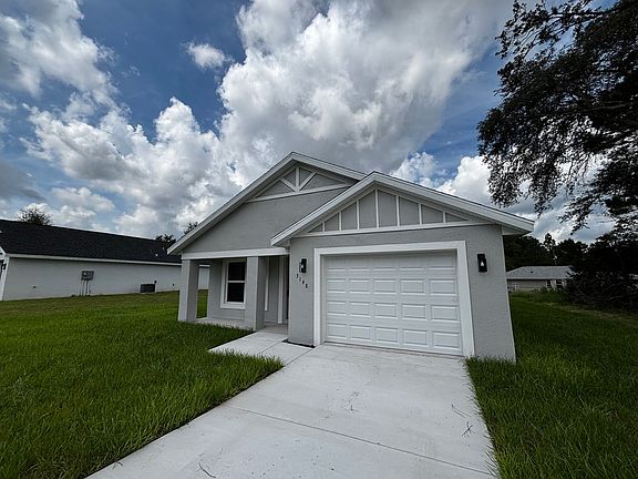 Welcome to this charming 3-bedroom, 2-bathroom home located in the desirable Rainbow Park Estates in Ocala, FL. This home boasts an open floor plan with LVP flooring throughout, and ceiling fans perfect for modern living. The kitchen is a chef's dream, featuring wood cabinets, granite countertops, a kitchen island, and a refrigerator with an ice maker. It also includes a glass top range and an over-the-range microwave for your convenience. The primary bathroom is a haven of relaxation with double sinks and a walk-in shower adorned with tile and a nice walk-in closet. Each bedroom is equipped with spacious closets, providing ample storage space. The home also includes an inside laundry room with washer/dryer hook-ups and a one-car garage. Enjoy the Florida weather on the exterior covered porch. This home is ideally located close to shopping, restaurants, WEC, Rainbow River, The Springs, and Dunnellon. Pets are welcome with prior owner approval. Experience the best of Florida living in this beautiful home in SW Ocala.