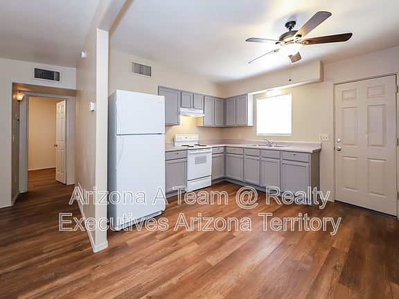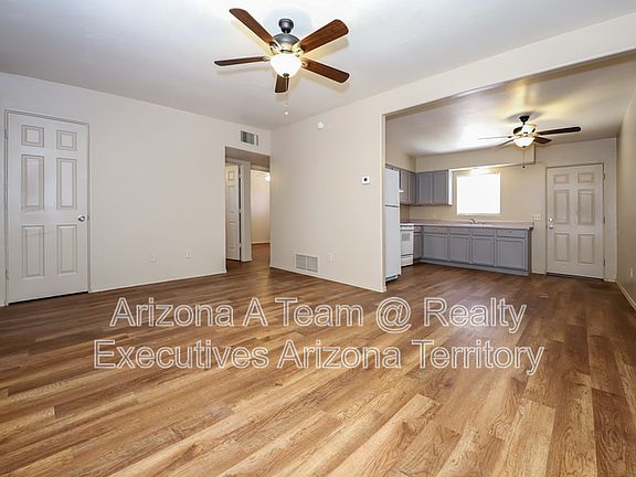 Centrally located and move-in ready, this updated 2-bedroom, 1-bath home features a spacious living room, a dedicated dining area, and hard surface flooring throughout. Freshly painted with plenty of off-street parking, it offers washer/dryer hookups conveniently located in the hallway closet. The private rear yard is enclosed with a block wall for added privacy and includes additional shared outdoor space. Conveniently located near shopping, dining, the bus line, and the University of Arizona. An additional $25/month water charge applies
