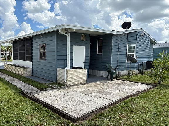 This furnished 2/2 home is located in the highly desirable 55+ lake Arrowhead community where you own the land and is not in a flood zone. This homes features include new roof and A/C in 2023. This spacious home has an eat at bar with cooktop and laundry is located inside the home. It also has laminate floors throughout and linoleum in the kitchen and bathrooms. Lake Arrowhead offers community pool and spa, shuffleboard, and community room with billiards, poker, ping pong and an exercise room. Enjoy many of the activities and parties or just relax by the pool and enjoy socializing with your friendly neighbors. There is some carport damage left from Ian. Please see the picture on this issue. It is priced accordingly.