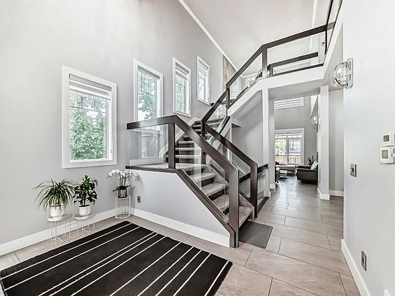 Custom-built 2 storey in Aurora with 3,800 sq ft of total living space, 5 bedrooms, 4.5 baths, and a triple tandem heated garage. The open main floor showcases soaring 20’ ceilings, a bright living room with gas fireplace, a modern kitchen with quartz counters, stainless steel appliances, and a dedicated spice kitchen with separate entry. Upstairs, the primary suite offers vaulted ceilings, a spa-inspired 5 pc ensuite with steam shower, and walk-in closet, along with 3 additional bedrooms featuring walk-ins, Jack & Jill bath, full bath, and a large laundry room. The fully finished basement features a theatre room, bedroom, 3-piece bath, ample storage, and a separate side entrance for added flexibility.