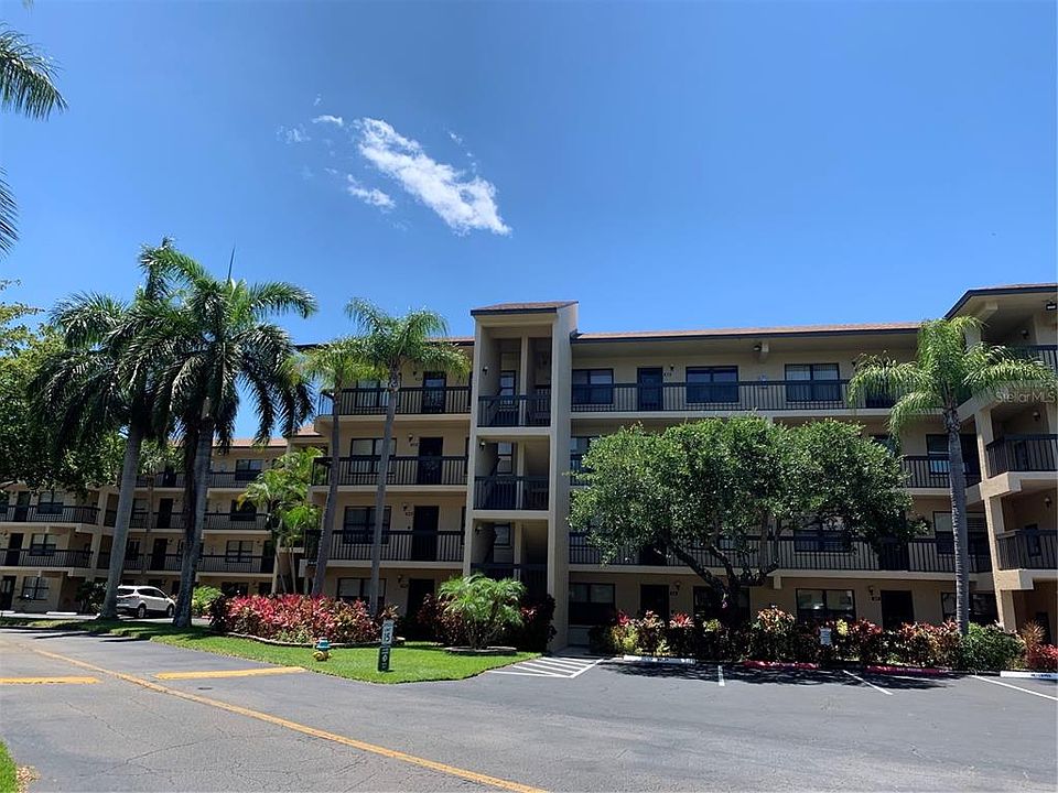 One or more photo(s) has been virtually staged. This beautifully maintained and tranquil 55 + gated community offers a wide variety of social activities. The freshly painted 2 bedroom / 2 Bath first floor, corner unit has assigned parking right in front of unit. The large kitchen has separate Eat-in Kitchen. The large great room allows for added dining area. New blinds, microwave, solid wood interior doors, new carpet in both bedrooms, portable dishwasher. the master bath has a shower and tub, 2nd bathroom has a shower. Relax on a lovely screened in porch with views of a large pond, gazebo, and outdoor grill area. Near to unit, you have outdoor locked storage, and laundry room. Enjoy the Florida lifestyle and this Active Community with Clubhouse/Recreational facilities, Fitness Center, shuffleboard, tennis, large pool, and outdoor grill in this well-maintained landscaped property. Close to Shopping, restaurants, and short drive to beaches.