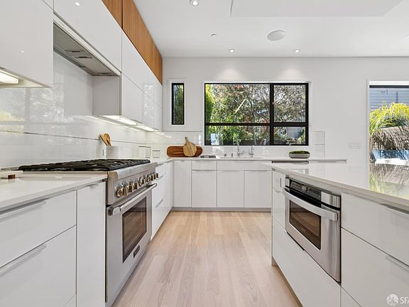 Modern 4BR home, redesigned and expanded in 2015 by Rossington Architects. A bright, open plan with clean lines and functional living/entertaining spaces supports ideal circulation throughout. The heart of the home includes a striking double parlor, sumptuous living room with wood-burning fireplace that frames a City view, elegant formal dining with ample space to host large dinner parties, and a chic powder room. Custom walnut detailing balances natural, warm accents with the contemporary interiors. At the rear of the plan is a breath-taking chef's kitchen and great room / family room that is an entertainer's dream! Southern orientation and large windows and doors create the ultimate indoor/outdoor flow to a broad deck and lush, mature gardens. The sky-lit upper floor includes 3BR/2BR, with dramatic primary suite, cathedral ceilings, a wall of south-facing windows, and laundry. Downstairs are three rooms that are smartly laid out to offer flexible living - a generous media den, bright office and 4th bedroom can be used as formal rooms, or opened up to suit a more family-friendly flow. Amazing walk/bike location, 94-WalkScore, steps to organic grocer, butcher, and other convenient services/trans. Across the street from Upper Noe Playground, Park and Recreation Center.